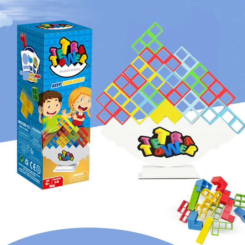 Tetra Tower Game Stacking Blocks Stack Building Blocks Balance Puzzle Board Assembly Bricks Kids Puzzle Creative Interactive Game Toys